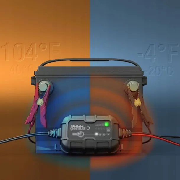 Przedmiot: PROSTOWNIK GENIUS5EU, NAPIĘCIE ŁADOWANIA: 6/12 V NOCO, PRĄD ŁADOWANIA: 5A, NAPIĘCIE ZASILANIA: 120/240V, RODZAJ AKUMULATORA: AGM/EFB/GEL/LI-ION/MF/WET