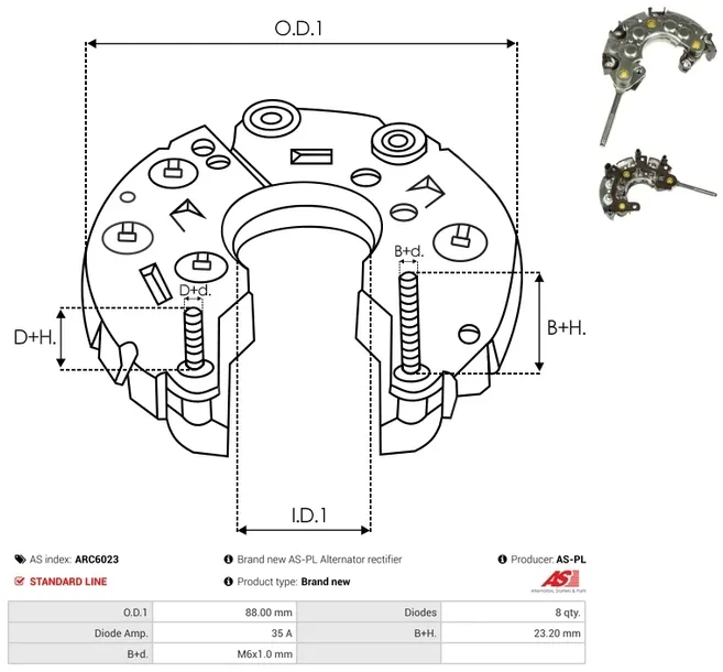 Całkowicie nowy zestaw prostowniczy alternatora od polskiej firmy AS-PL. Nasze mostek to wysokiej jakości produkt specyfikacją i parametrami nie odstępujący od oryginalnej części. Jest to znakomity zamiennik, dla oryginalnie zamontowanego prostownika w Twoim alternatorze.