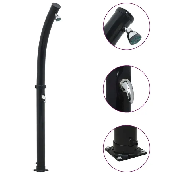 Energooszczędny prysznic solarny do uzyskania ciepłej wody nie potrzebuje żadnych elementów grzewczych. Wykonany z PVC natrysk jest trwały i nie zawiera szkodliwych, chemicznych komponentów. Czarny kolor przyczynia się do szybkiej absorpcji energii solarnej w słoneczne dni. Woda podgrzewa się do temperatury 60°C. Ogrodowy prysznic został wyposażony w praktyczną regulację temperatury, która pozwoli w prosty sposób wybrać ciepłą lub chłodną wodę. Co więcej, można go podłączyć do każdego standardowego węża ogrodowego, bez dodatkowej hydrauliki. Produkt jest łatwy w montażu.