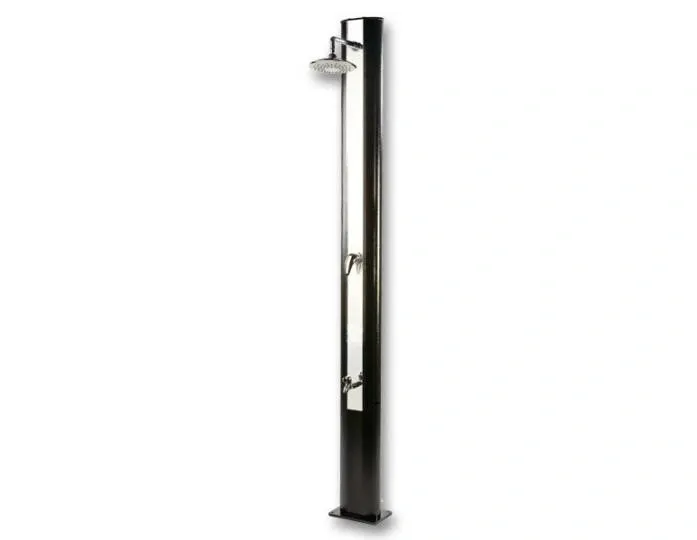 Solarny prysznic ogrodowy to idealny dodatek do basenów, ogrodów oraz domów jednorodzinnych. Aluminiowy prysznic solarny De Luxe wyróżnia się nowoczesnym, a wręcz luksusowym designem. Dodatkowo, w dolnej części korpusu posiada wbudowany zawór do opłukiwania stóp. Wyjątkowy charakter podkreśla również zamontowana na stałe, stylowa deszczownica (tzw. "talerz").