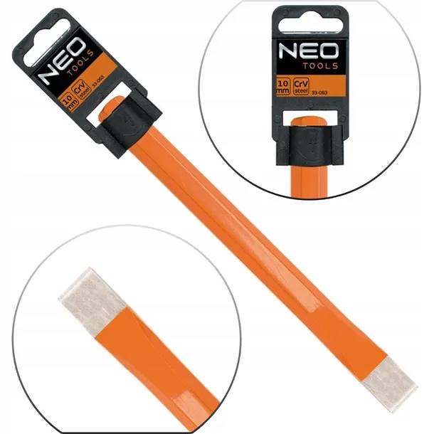 Przecinak NEO (nr ref. 33-072) o długości 150 mm i sześciokątnym przekroju. Przeznaczony do wycinania otworów w ścianach, rozbijania i kruszenia twardych materiałów. Wykonany z wysokiej jakości stali chromowo-wanadowej, zapewniającej długą żywotność produktu. Zakończony płaskim ostrzem o szerokości 10 mm. Marka NEO spełnia oczekiwania profesjonalistów.