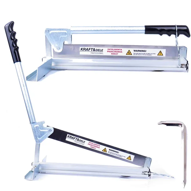✅Ręczna przecinarka do paneli laminowanych polskiej marki Kraft&Dele model. Dzięki temu urządzeniu bez wysiłku skrócisz deski podłogowe na odpowiednią długość bez odprysków. Urządzenie nadaje się do obróbki płyt MDF, VCT, PCV, płytek dywanowych, gumowych, winylowych, skóry oraz winylowych i cementowo-wiórowych paneli elewacyjnych