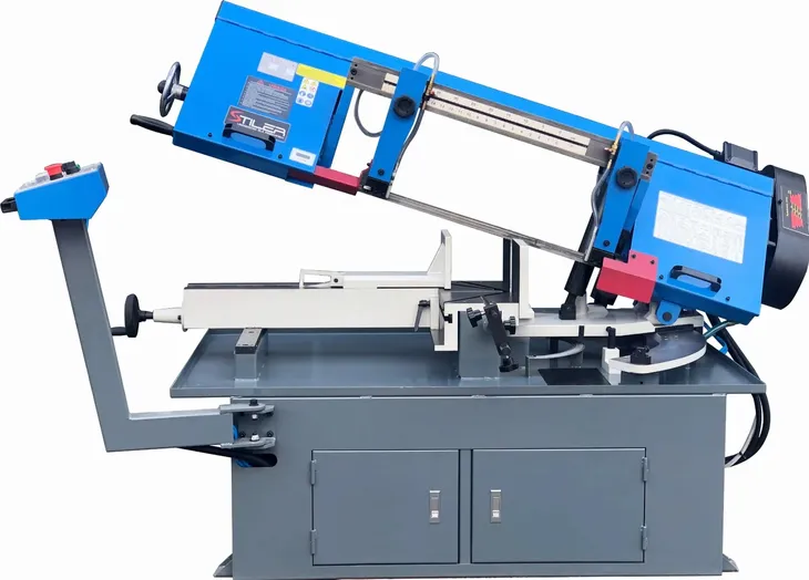 - Masywna, stabilna i dopracowana konstrukcja oraz ramię wykonane z masywnych spawanych blach stalowych zapewnia maszynie bardzo dużą sztywność i stabilność przy cięciu, co zapewnia precyzję cięcia i długą bezawaryjną pracę. Budowa jak i zastosowanie taśmy tnącej o szerokości 27 mm, umożliwia w pełni wykonywanie wieloseryjnych cięć zarówno profili jak i pełnych detali.