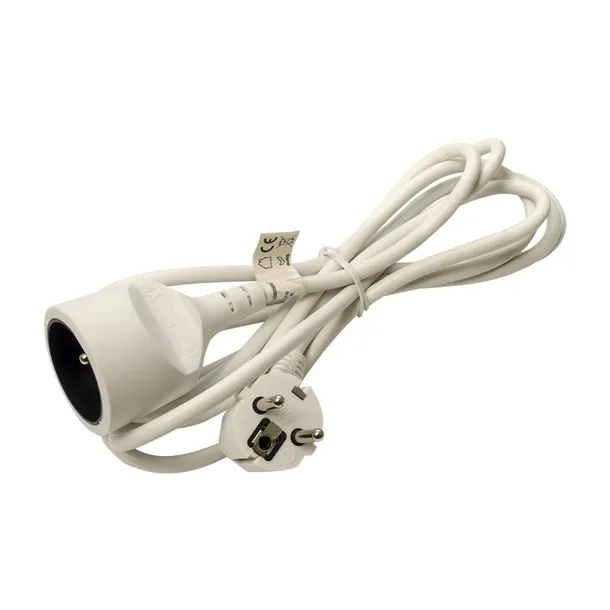Przedłużacz 1-gniazdowy z uziemieniem, biały - 3 m