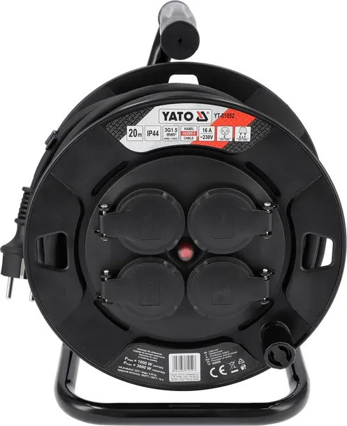 Wysokiej klasy przedłużacz bębnowy o długości 20m z 4 gniazdami. Przewód wykonany jest z 3 żył miedzianych o przekroju 1,5mm² każdy. Taki przekrój przewodu umożliwia podłączenie do tych przedłużaczy jednocześnie 4 urządzeń, co jest szczególnie przydatne na budowie, w warsztacie czy zakładzie produkcyjnym. Przewody pokryte są izolacją wykonaną z gumy naturalnej H05RR-F, która charakteryzuje się wysoką odpornością na uszkodzenia mechaniczne, czynniki atmosferyczne, substancje chemiczne (oleje chłodząco-smarujące, benzynę, czy alkohole etylowe, metylowe). Taka izolacja zapewnia napięcie znamionowe 300V / 500V.