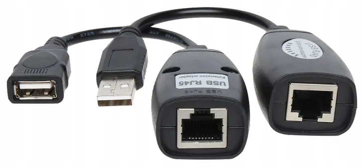 - Krótki opis: Przedłużacz myszki USB za pomocą skrętki UTP kat. 5/5e/6 , max odległość 50m