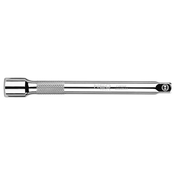Przedłużka 3/8" NEO o długości 150 mm to profesjonalne narzędzie przeznaczone do pracy w trudno dostępnych miejscach. Wykonana z wysokiej jakości stali chromowo-wanadowej (CrV), zapewnia trwałość, odporność na odkształcenia i korozję. Produkt spełnia wymagania normy DIN 3123, co potwierdza jego jakość i precyzję wykonania. Certyfikat TÜV jest dodatkowym potwierdzeniem niezawodności. Marka NEO to synonim niezawodnych narzędzi dla wymagających użytkowników.
