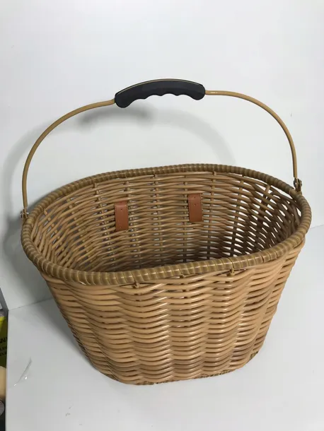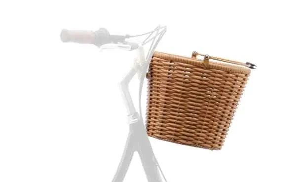 Klasycznie stylizowany kosz rowerowy, który można łatwo przymocować do kierownicy za pomocą dwóch regulowanych pasków z tyłu.