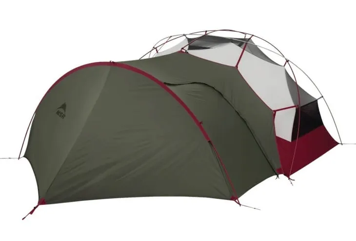Przedsionek do namiotu MSR GearShed V2 dla Elixir & Hubba NX opiera się na wytrzymałym pałąku z aluminium 7000. Model jest doczepiany do namiotu za pomocą wytrzymałych linek. Przedsionek ma jedne boczne drzwi, które są zabezpieczone szeroko otwieranym zamkiem. Całość zwiększa przestrzeń użytkową namiotu o ok. 2,46 m2. Przedsionek jest mocowany do podłoża za pomocą wytrzymałych szpilek. Produkt wyróżnia się niezwykle niską wagą, poza tym na niewielkie wymiary po spakowaniu. Całość pasuje do namiotów MSR Elixir oraz MSR Hubba (model nie jest kompatybilny z namiotami MSR Elixir 4 i MSR Papa Hubba).