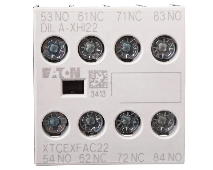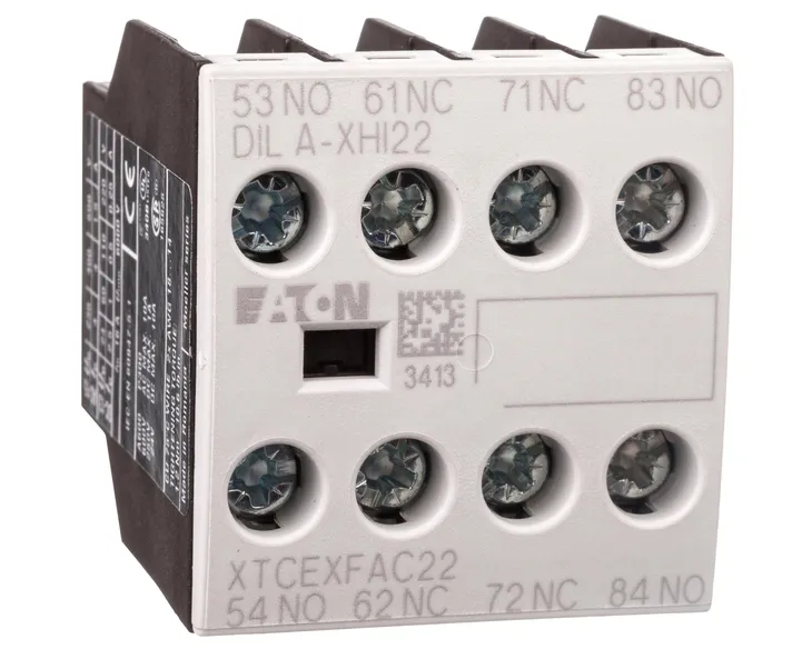 Łączniki pomocnicze do zabudowy ze stykami wymuszonymi, montaż beznarzędziowy Seria styków pomocniczych DILA stosowana jako styczniki pośredniczące do wysterowania styczników mocy. Podwójne zaciski skrzynkowe, wbudowana ochrona przeciwprzepięciowa dla cewek w wersji DC, trwałość mechaniczna 20 milionów cykli.