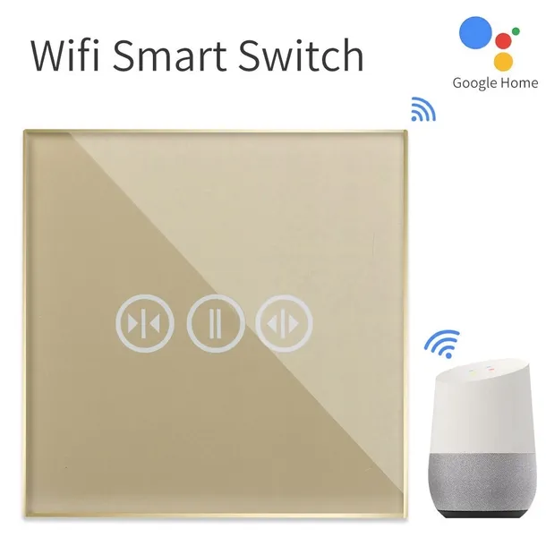 Dotykowy włącznik przełącznik rolet elektrycznych, w kolorze złotym, obsługiwany za pomocą WiFi oraz aplikacji TUYA lub SMART LIFE