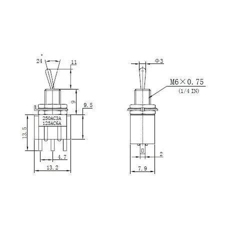 6A 125VAC, 3A 250VAC