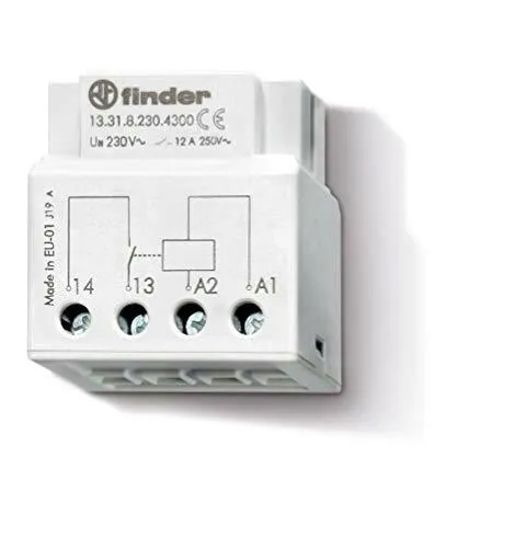 Przekaźnik przełączający do puszki podtynkowej lub skrzynki rozdzielczej, materiał stykowy AgSnO2, maks. Prąd rozruchowy 80 A na 5 ms, temperatura otoczenia: -10 do 60°C.