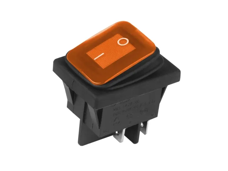 Hermetyczny przełącznik hermetyczny DC / AC max. 20A ze wskaźnikiem LED w kolorze pomarańczowym. Wskaźnik zaświeca się w pozycji ON.