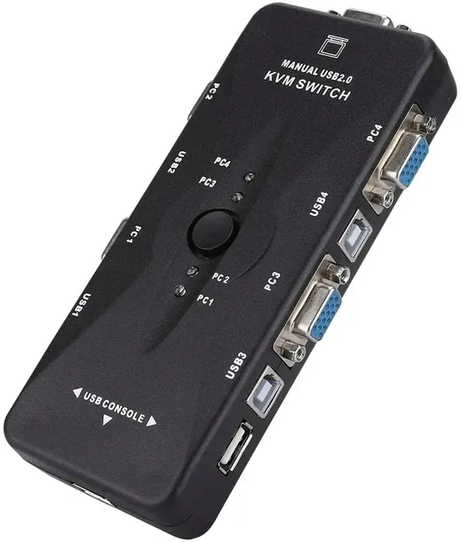 Przełącznik KVM pozwala podłączyć 4 komputery do 1 monitora i używając jednocześnie jednego zestawu klawiatury z myszką.