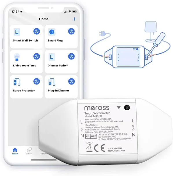 Inteligentny przełącznik Wi-Fi Meross MSS710-UN (Non-HomeKit)Zarządzanie inteligentnym domem nigdy nie było prostsze. Przełącznik Wi-Fi marki Meross pozwala w prosty sposób sterować sparowanymi z nim urządzeniami zdalnie – za pomocą aplikacji lub komend głosowych. Urządzenie jest kompatybilne między innymi z Amazon Alexa i Google Assistant. Do jego prawidłowego działania wystarczy istniejąca sieć Wi-Fi – nie potrzebujesz żadnych dodatkowych hubów.Obsługuj swoje urządzenia na odległośćZyskaj możliwość zdalnego sterowania urządzeniami takimi jak lampy, wentylatory czy grzejniki. Aplikacja Meross pozwala między innymi wygodnie włączać i wyłączać sparowany z przełącznikiem sprzęt na odległość, a także sprawdzać jego status. Produkt jest też kompatybilny z Samsung SmartThings, Amazon Alexa i Google Assistant. Możesz również kontrolować go głosem, na przykład za pomocą inteligentnego asystenta Siri.Twórz harmonogramy pracy i timeryDostosuj działanie swoich urządzeń do Twojego planu dnia. Za pomocą aplikacji możesz tworzyć harmonogramy pracy dla połączonych z przełącznikiem sprzętów. Spraw, że światło automatycznie zapali się o 7:00, kiedy wstajesz, a zgaśnie o 23:00, gdy położysz się spać. Istnieje też możliwość ustawiania timerów – skorzystaj z niej, jeśli chcesz, aby wybrane urządzenie samoistnie wyłączyło się po ustalonym czasie. Dostępna jest również funkcja wschodu / zachodu słońca.Przyjazny użytkownikomMontaż i konfiguracja przełącznika nie sprawią Ci żadnego problemu. Nie musisz też kupować dodatkowych hubów – wystarczy działająca sieć Wi-Fi. Urządzenie zapewnia także bezpieczeństwo. Zostało wyposażone w układ ochrony przed przeciążeniem, a jego obudowę wykonano z wytrzymałego, ognioodpornego tworzywa. Wszystko to sprawia, że przełącznik może świetnie Ci służyć przez długi czas.