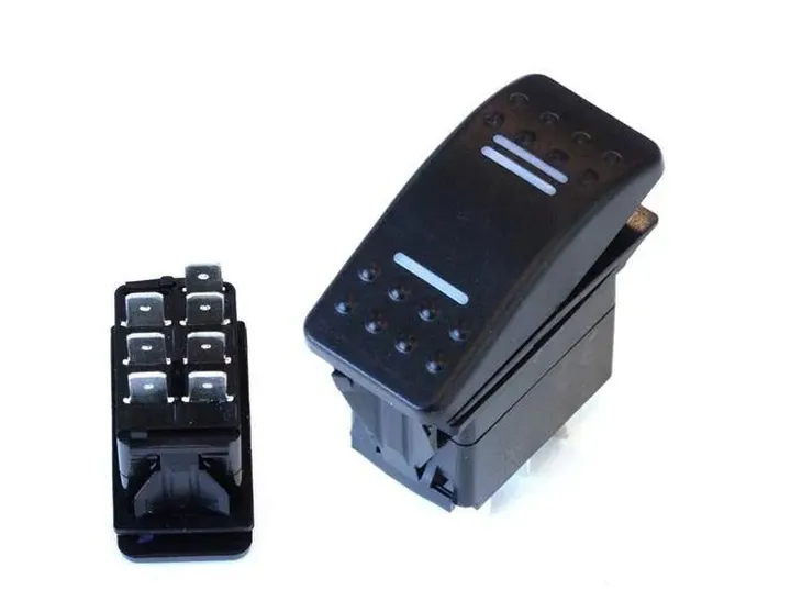 Przełącznik ON-OFF-ON 7PIN niebieskie podświetlenie.