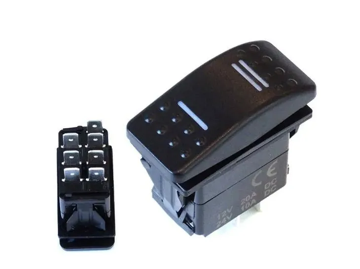 Przełącznik (ON)-OFF-(ON) 7PIN niebieskie podświetlenie.