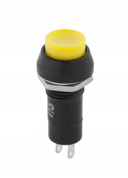 Liczba Pinów: 2, co ułatwia podłączenie i integrację z różnymi systemami. Stany: Dwustanowa funkcja ON-OFF, zapewniająca prostotę użytkowania. Obciążalność: Przystosowany do 1 A przy 250 VAC, odpowiedni dla lekkich aplikacji elektrycznych. Średnica Montażowa: 12 mm, co umożliwia łatwą instalację. Kolor: Żółty, dodający estetycznego wyglądu do projektu. Waga: Bardzo lekki, waży tylko 5,5 g, co jest zaletą w mobilnych lub delikatnych systemach.