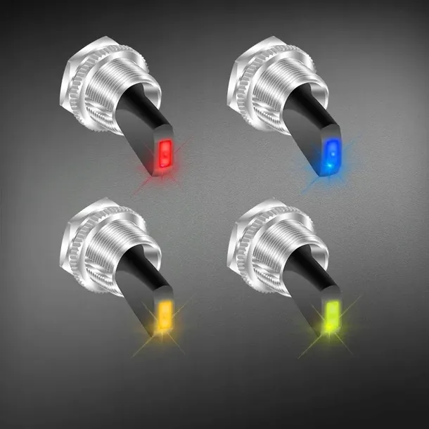- Funkcja: 30A 12VDC LED są dostępne w czterech kolorach: czerwony/żółty/niebieski/zielony. Dioda LED zaświeci się, gdy przełącznik jest włączony.