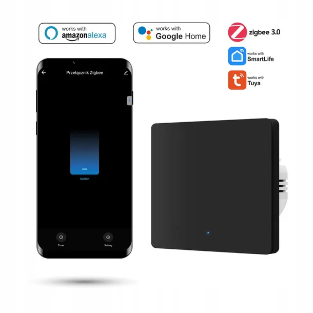 - Przełącznik współpracuje z Tmall Genie i bramkami Zigbee2MQTT, dzięki czemu można je połączyć z Home Assistantem