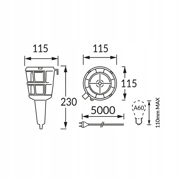 - Uwagi: przewód 5 m z wtyczką, maksymalne wymiary źródła światła E27: h110, Ø 60