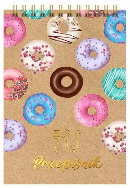Oryginalny i funkcjonalny Przepiśnik. Słodko mi dla pasjonatów gotowania i nie tylko, doskonały do gromadzenia ulubionych przepisów. Podręczny format i kartki łączone za pomocą spirali pozwalają na wygodne wertowanie kartek. Całość spaja nietuzinkowa okładka z tektury z recyklingu, zadrukowana kolorowym wzorem, dodatkowo ozdobiona złoconymi detalami. Kartki w środku zostały zaplanowane na wypisanie wszystkich składników, poziomu trudności, czasu przygotowania oraz opisanie procesu przyrządzania potrawy. Notes zawiera graficzny przelicznik miar kuchennych. Przepiśnik wyprodukowano w : tektura 100% z recyklingu, złota spirala, złocenie W serii:Przepiśnik Zielono mi