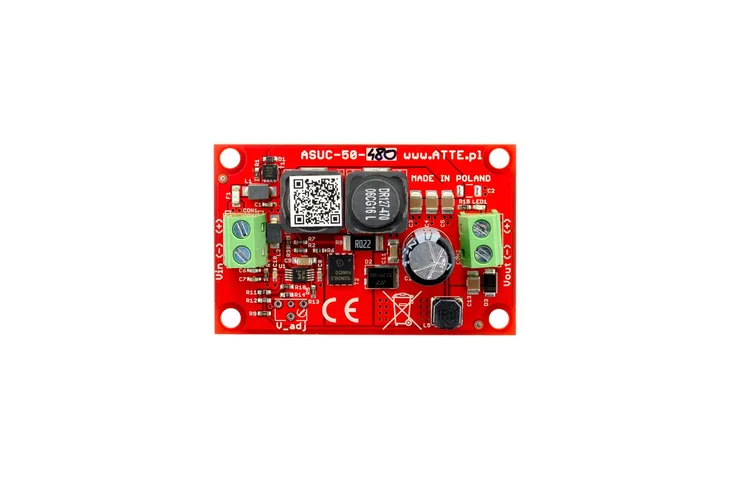 Moduł ASUC50/48 jest wysokosprawną przetwornicą DC-DC podwyższającą napięcie, przystosowaną do zasilania odległych urządzeń elektronicznych poprzez standardową skrętkę komputerową UTP. Urządzenie współpracuje z dowolnym zasilaczem o napięciu nominalnym 8-30VDC.