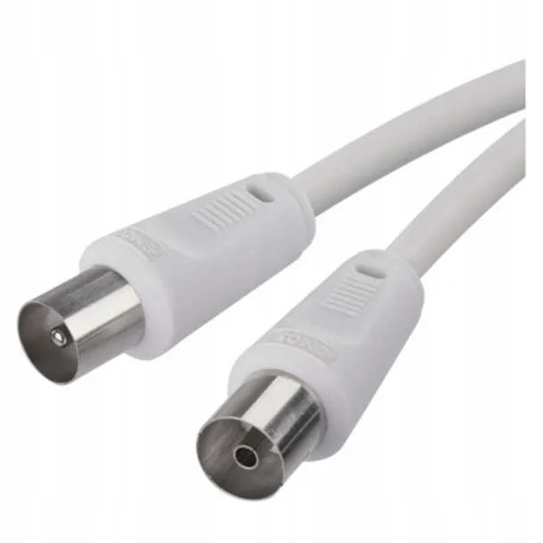 Opis produktu Koncentryczny przewód antenowy z wtyczką i gniazdkiem IEC. Przewód jest podwójnie ekranowany w celu redukcji zakłóceń elektromagnetycznych. Długość przewodu wynosi 5 m. Przewód koncentryczny jest przeznaczony do SAT, DVB-T, ANT, DECODER, FLAT TV i TV.