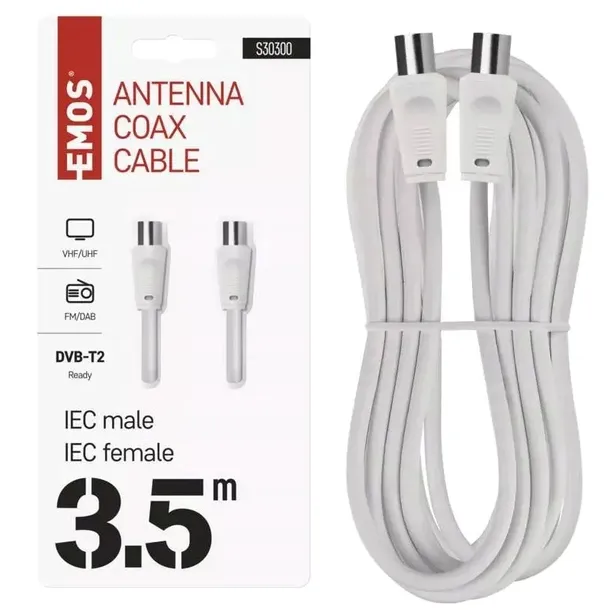 długość: 3,5 m|ilość ekranów: 2|materiał: PVC|opakowanie: 1 szt., blister|typ złącz: 2× proste|złącza: IEC wtyczka – IEC gniazdo