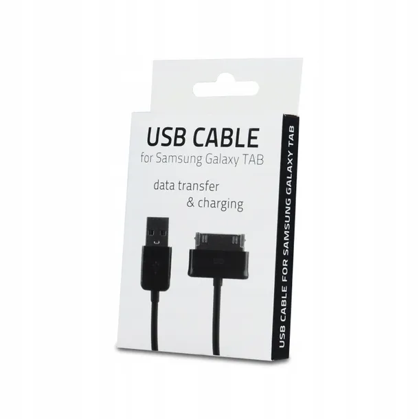 Wysokiej klasy zamiennik oryginalnego kabla, dedykowany urządzeniom firmy Samsung. Czarny kabel USB to funkcjonalna i całkowicie bezpieczna alternatywa dla drogich oryginalnych kabli o tym samym zastosowaniu. Kabel o długości 100 cm posiada wtyczkę dostosowaną do Samsunga Galaxy TAB, a także złącze USB 2.0. Jest on kompatybilny z portami USB 1.1 oraz 2.0 3.0