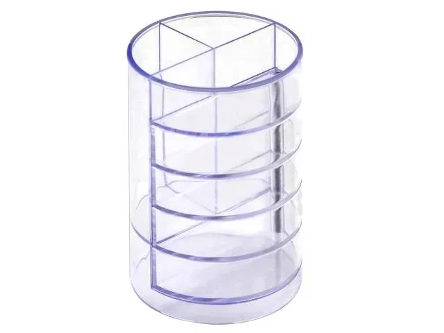 Funkcjonalny przybornik na biurko w kształcie walca, służy do skutecznej organizacji miejsca pracy. Pomaga uporządkować przestrzeń na biurku, dzięki czemu wszystkie potrzebne akcesoria będą zawsze pod ręką. Wyposażony w 2 pionowe przegródki na długopisy i nożyczki oraz 5 wysuwanych szulad na drobne akcesoria np. spinacze, zszywki, korektory itp. Kolor: dymny