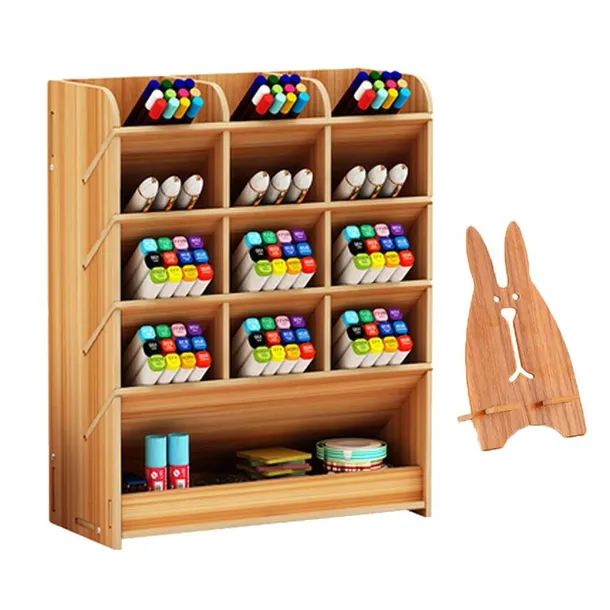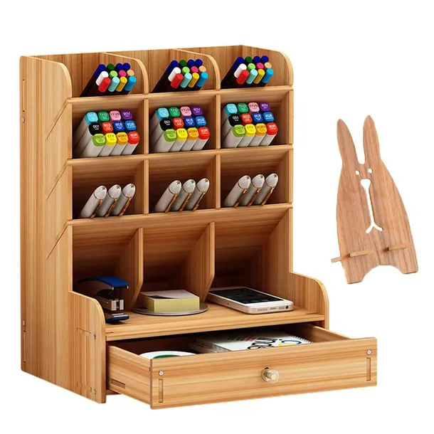 9 przegródek na długopis do przechowywania zakreślaczy ołówków, 3 przegródki do przechowywania nożyczek, karteczek samoprzylepnych. Świetnie nadaje się również do przechowywania lakierów do paznokci, szminek i innych drobiazgów osobistych.