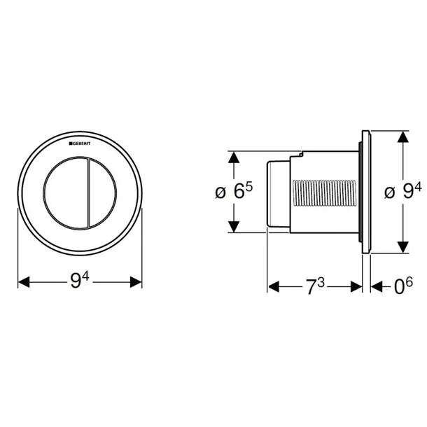 - istnieje możliwość połączenia z przyciskiem uruchamiającym Geberit do spłukiwania jednoilościowego z funkcją "spłukuj/stop" lub zaślepką otworu rewizyjnego