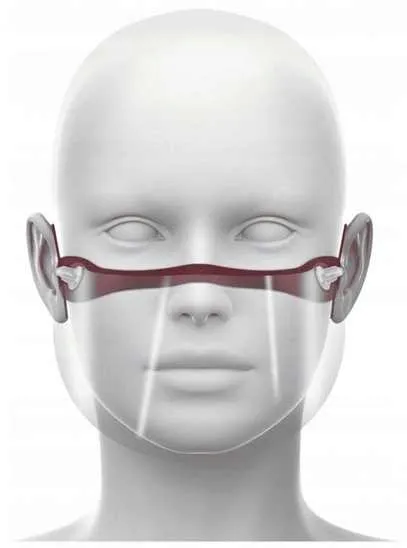 - przezroczysta tarcza, wyprofilowany pasek nosowy oraz dystans zachowany między osłoną a twarzą zapewnia wygodę użytkowania, nie utrudniając oddychania