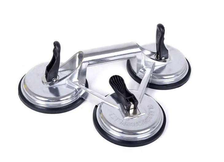 Potrójna przyssawka do szyb 3x120mm, wykonana z bardzo mocnej gumy, o średnicy 120mm i maksymalnym udźwigu 140 kg. Stosowana do przenoszenia elementów o płaskich, gładkich powierzchniach np. szyb okiennych, samochodowych, arkuszy blach, płytek ceramicznych, laminatów itp. Zapewnia mocny i pewny uchwyt. Korpus wykonany ze stopu aluminium, polerowany. Kolor uchwytu celowo dobrany tak, by łatwo było go odnaleźć w schowku z narzędziami.