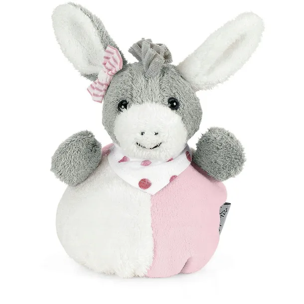 Przytulanka dla dzieci: słodki osiołek z naszytym szalikiem Ze zintegrowaną grzechotką i trzeszczącym papierem stymulującym zmysły Wysoka jakość wykonania: rzep: 100% poliester; Pierścionki z dżerseju: 100% bawełna Łatwe do czyszczenia: można prać w pralce w 40 ° C.