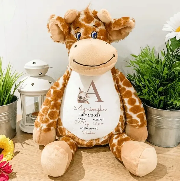 PRZYTULANKA ŻYRAFA Miś Na Prezent Dla Dziecka METRYCZKA Twoje Imię Wzory