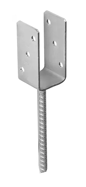 Kotwa do betonu U - PS jest podstawowym modelem zatapianej podstawy słupa i pozwoli Ci na sprawny oraz stabilny montaż drewnianych elementów z betonem. Podstawa słupka przykręcana do betonu gwarantuje również właściwą dylatację drewna od podłoża. Metalowa kotwa do betonu otrzymała Europejską Aprobatę Techniczną o numerze ETA 14/0425. Posiada żebrowany pręt o dużej średnicy i jest pokryta cynkiem ogniowym. Ma właściwości antykorozyjne oraz wysoką odporność na działanie wilgoci. Kotwy do słupów wkręcane do betonu "U" możesz pomalować farbą przeznaczoną do cynkowanych powierzchni.