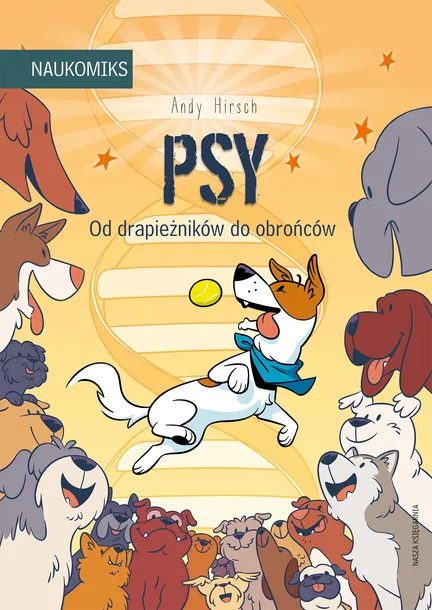 Zerwij się ze smyczy z psami! Jak dobrze znasz swojego ulubionego czworonoga? Jaka jest różnica między rasą chihuahua a bernardynem? Czy psy naprawdę pochodzą od wilków? I jak bystre są w rzeczywistości? Wraz z przyjaznym kundelkiem wyrusz w podróż, by odkryć, skąd się wzięły psy, jak genetyka i ewolucja wpływają na gatunki i dokąd właściwie poleciała ukochana piłeczka. W książce znajdziesz liczne smakowite fakty, które sprawią, że przewrócisz się na plecy i będziesz prosić o więcej! Andy Hirsch stworzył kilka książek do serii „Naukomiks”. Psy – od drapieżników do obrońców to kolejna po Kotach ukazująca się w języku polskim. Mieszka w Dallas w Teksasie.