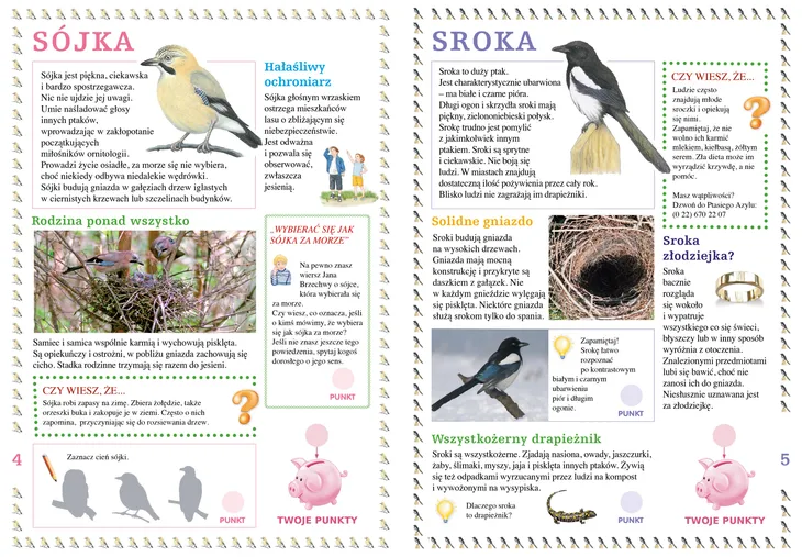 Podczas spacerów, wycieczek i wakacji jest wiele okazji do obserwowania ptaków. Spotkać je można wszędzie. Niech więc nasi skrzydlaci bracia nie będą dla dzieci bezimienni. Wiedza zdobyta podczas lektury zeszytu może stać się inspiracją do odkrywania tajemnic świata ptaków. Zeszyt powstał, by pomóc i ułatwić dzieciom poznanie i pokochanie polskiej przyrody. Podpowiadamy, jak rozmawiać z dzieckiem o fascynującej przyrodzie. Pragniemy razem z Państwem pokazać dzieciom piękno i bogactwo naszej przyrody, pobudzić ich naturalną ciekawość. Dzięki zabawie z zeszytem dziecko będzie wiedziało więcej o ptakach, będzie umiało je odróżniać, zainteresuje się ich życiem. Zachęcamy do wspólnego odkrywania świata polskiej przyrody.