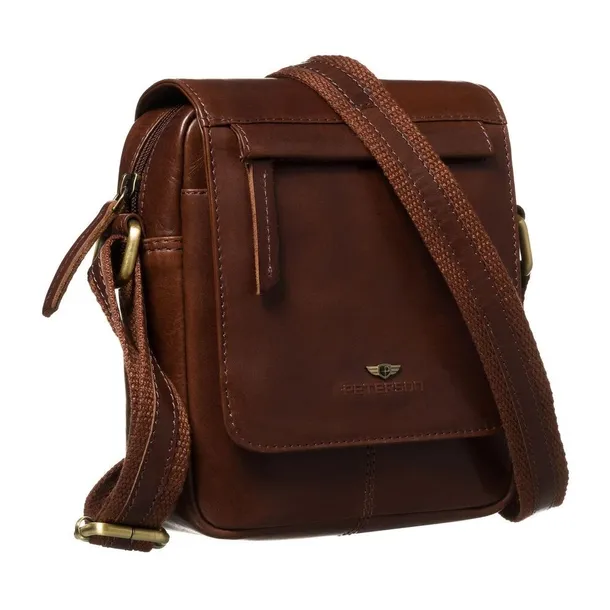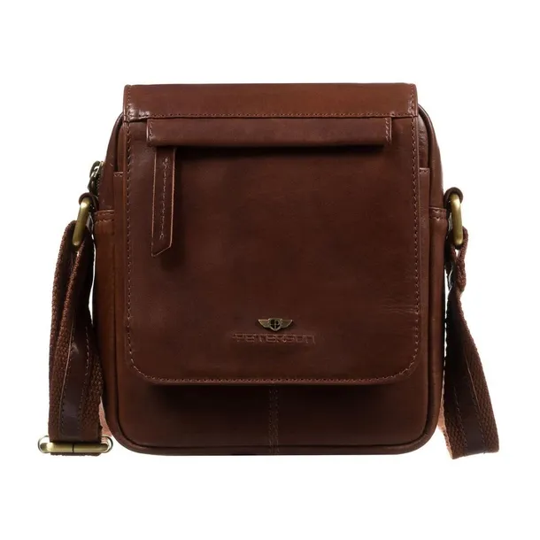 Skórzana, brązowa torba męska na ramię z klapką i etui w zestawie - Peterson