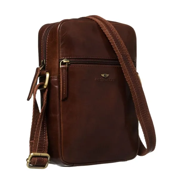 Skórzana listonoszka męska w brązowym kolorze, zamykana na złoty suwak w zestawie z saszetką - Peterson