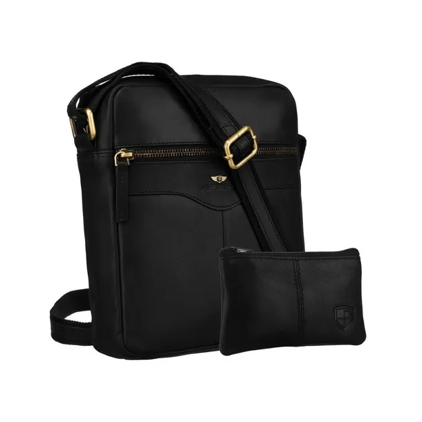 Czarna, skórzana listonoszka męska z kieszonką, zamykana na suwak - Peterson