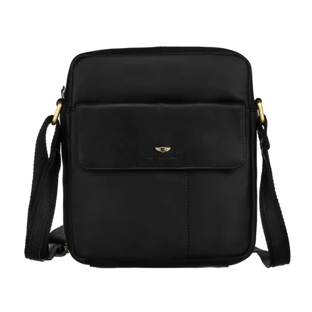 Skórzana listonoszka męska do pracy w czarnym kolorze - Peterson