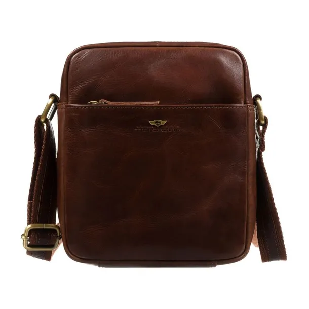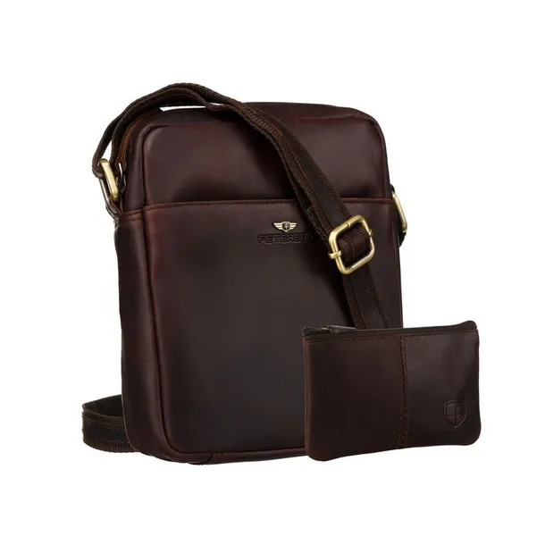 Brązowa torba-listonoszka ze skóry naturalnej z etui na klucze w zestawie - Peterson
