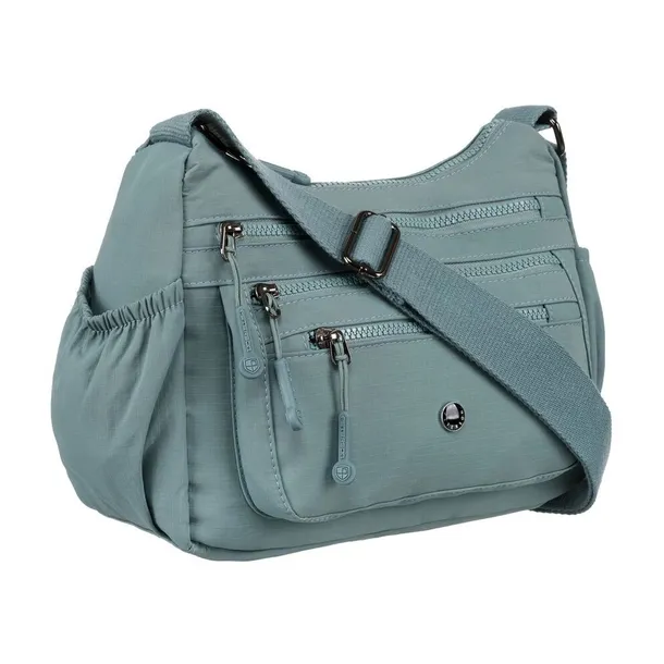 Niebieska torebka damska z poliestru z kieszenią na suwak na froncie - Peterson