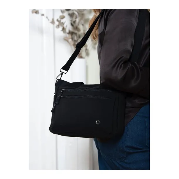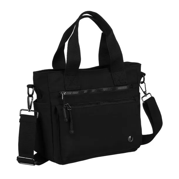 Czarna shopperka damska z poliestru z uchwytami i dopinanym paskiem - Peterson
