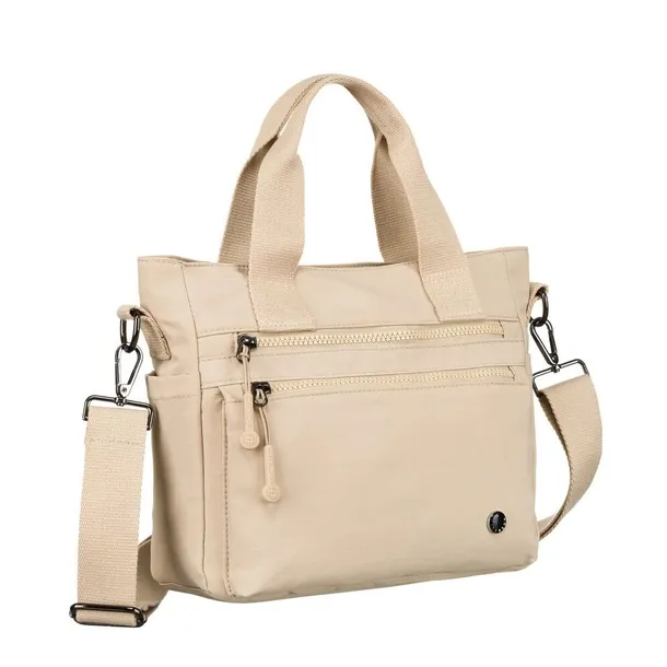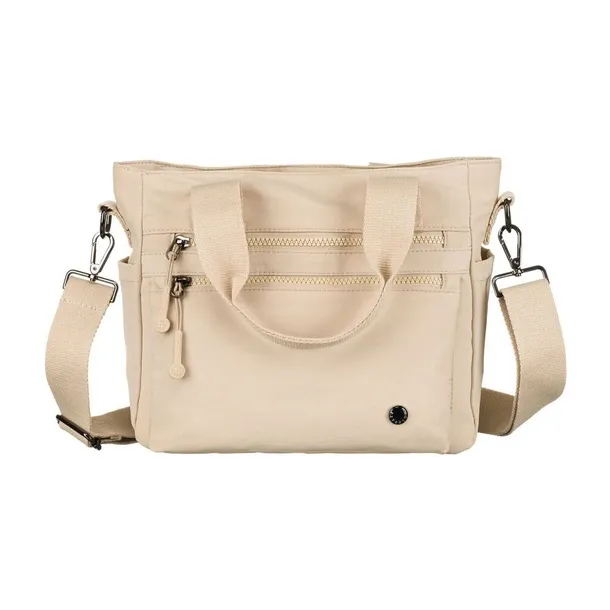 Niewielka shopperka damska z poliestru w beżowym kolorze z dopinanym paskiem - Peterson