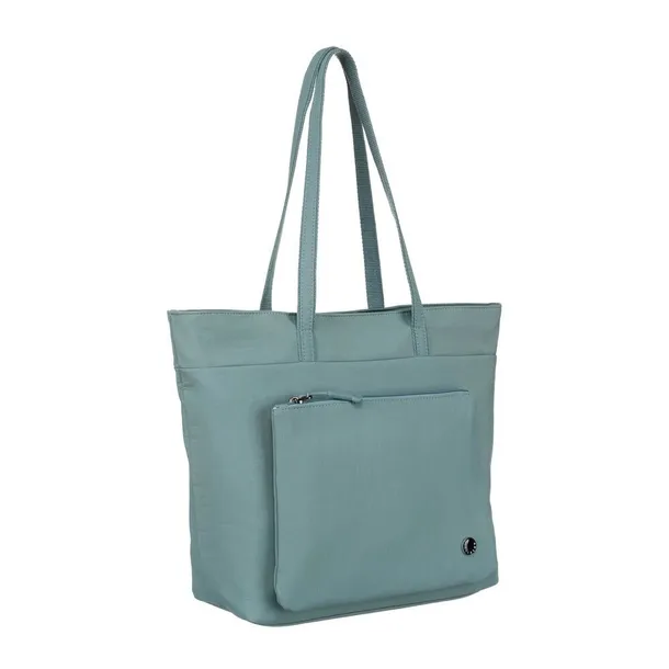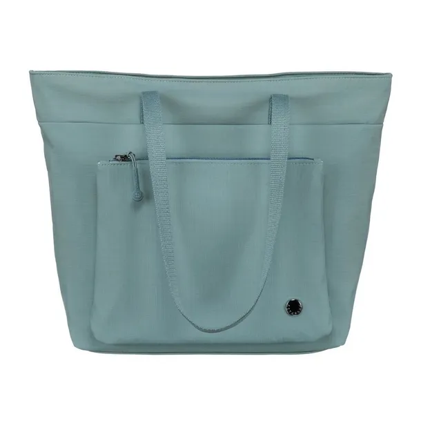 Niebieska, jednokomorowa shopperka damska z poliestru z kieszenią na froncie - Peterson